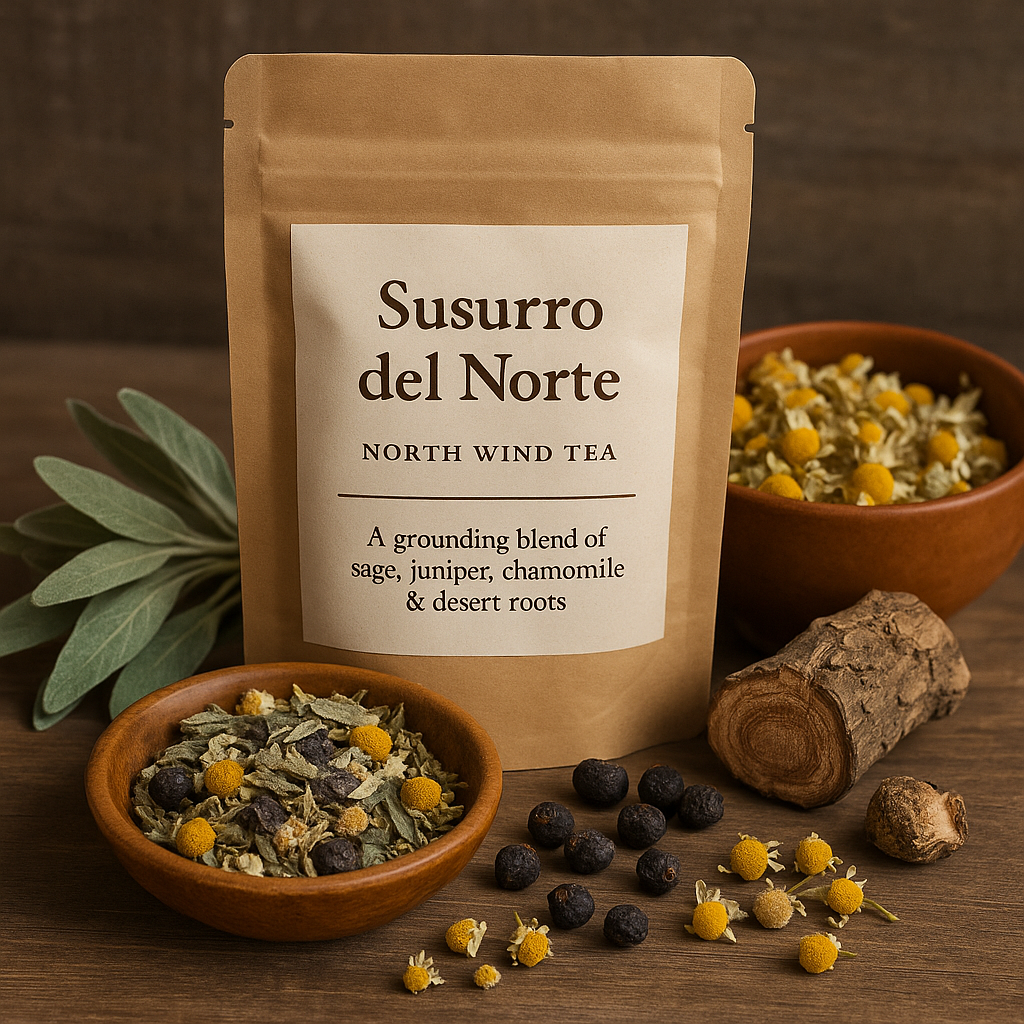 North Wind Herbal Tea — sage, juniper berries, cornsilk, chamomile, lemongrass, and cinnamon chips to center the spirit and restore calm balance.
