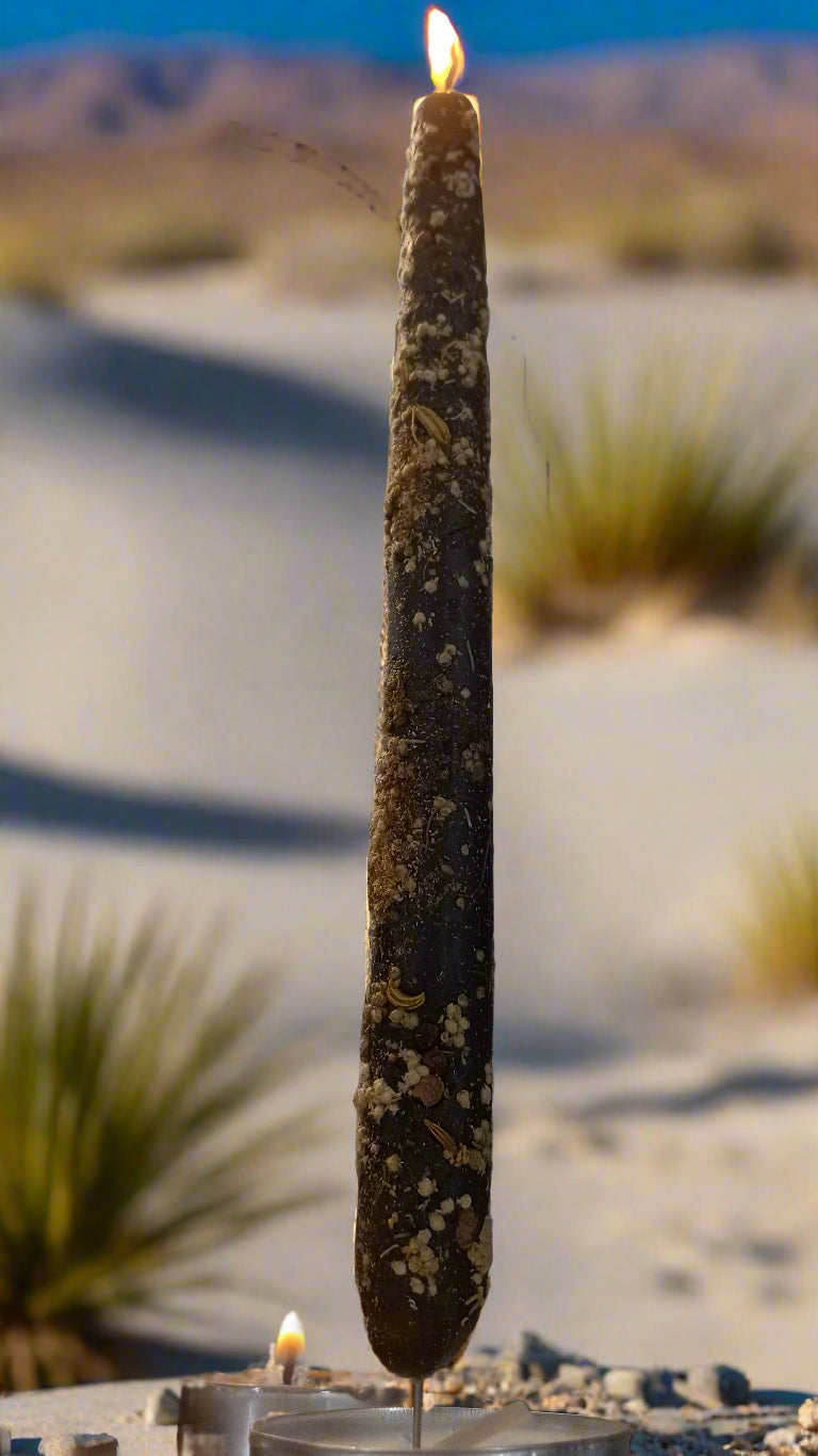 Vela del Espíritu Ancestral Candle — Red Clover, Chaste Berries, Fennel Seeds, and Frankincense; a sacred flame for ancestral remembrance and protection.